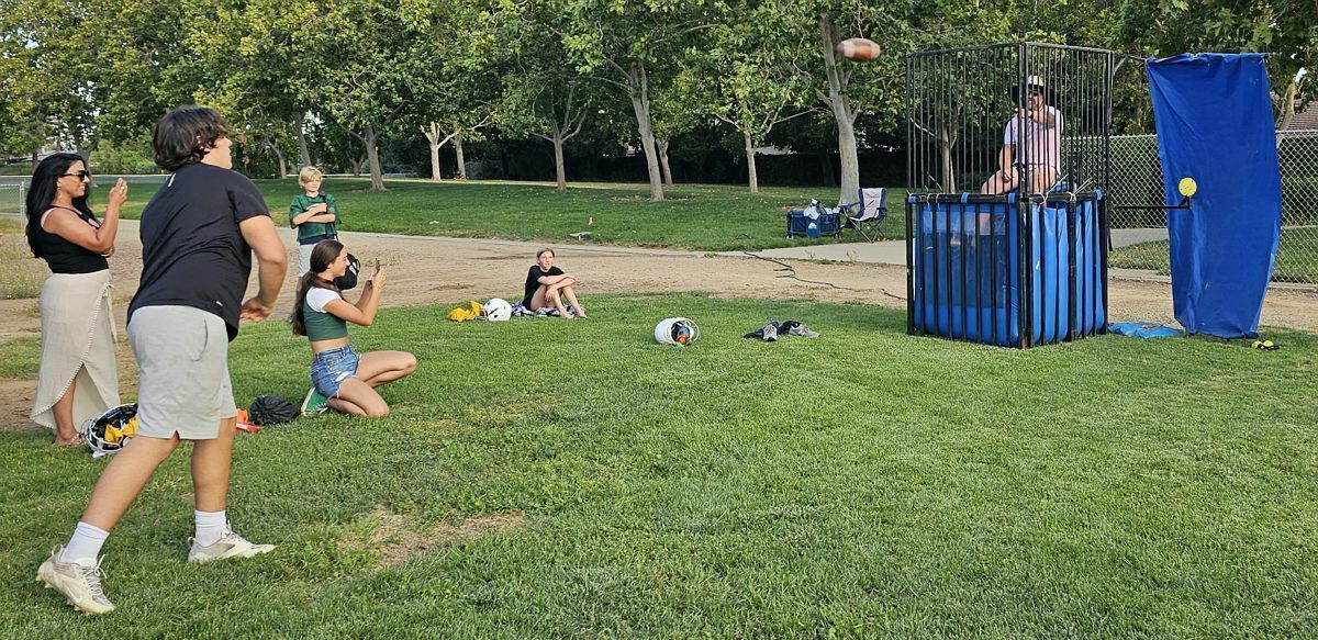 If there's one thing kids love, it's making adults look silly. The dunk tank at the Livermore Bulls Football League's Jamboree Kickoff in Livermore, California, accomplished just that. "It was the icing on the cake," says Ms. Ebony Bains, fundraising coordinator and board member for the Livermore Bulls. "The kids got really excited and huddled around the dunk tank, trying to get a turn."